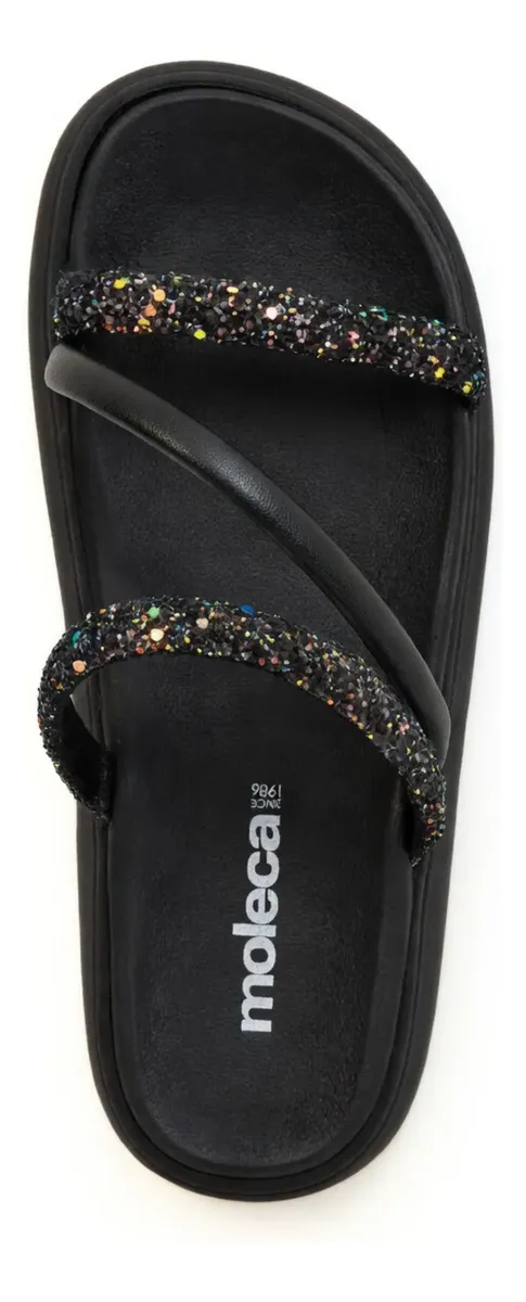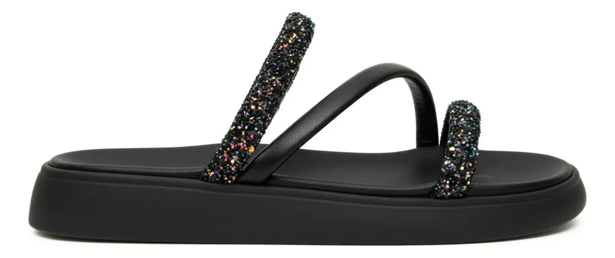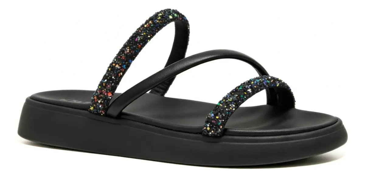 Sandália feminina confortável, perfeita para o dia a dia e ocasiões especiais. Modelo com brilho em strass, tendência da moda atual.